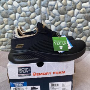 Trendy athletic style and cushioned comfort combine in BOBS from Skechers� Bobs Buno . A Faux Lace Engineered Knit Slip On Shock-absorbing midsole and a cushioned Skechers Memory Foam� insole. For every BOBS purchase, a donation is made to animals in need.